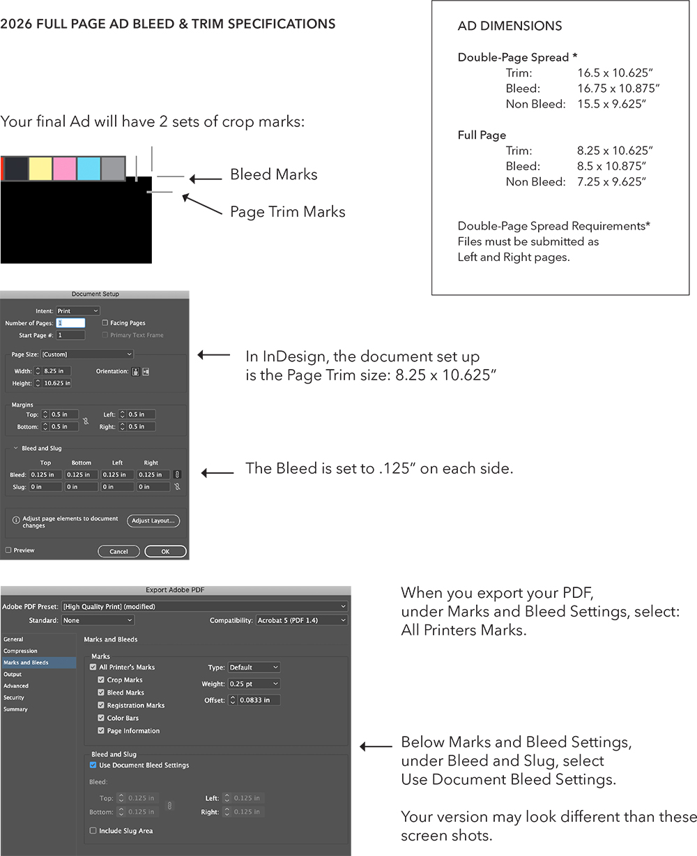 Bleed and Trim marks must be included in your Ad file/ Ad PDF.